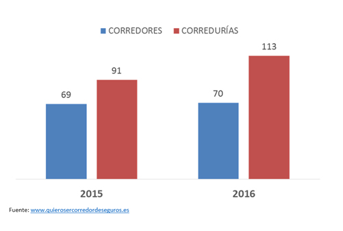 Los datos reflejan que el incremento ha sido superior en las corredurías, un 62% del total, frente a los corredores individuales que supusieron un 38%. En el caso de las corredurías el incremento respecto a 2015 ha sido del 24%, mientras que los corredores individuales lo han hecho un 1,5%. Desde el portal señalan que esta misma será la tendencia prevista para 2017.