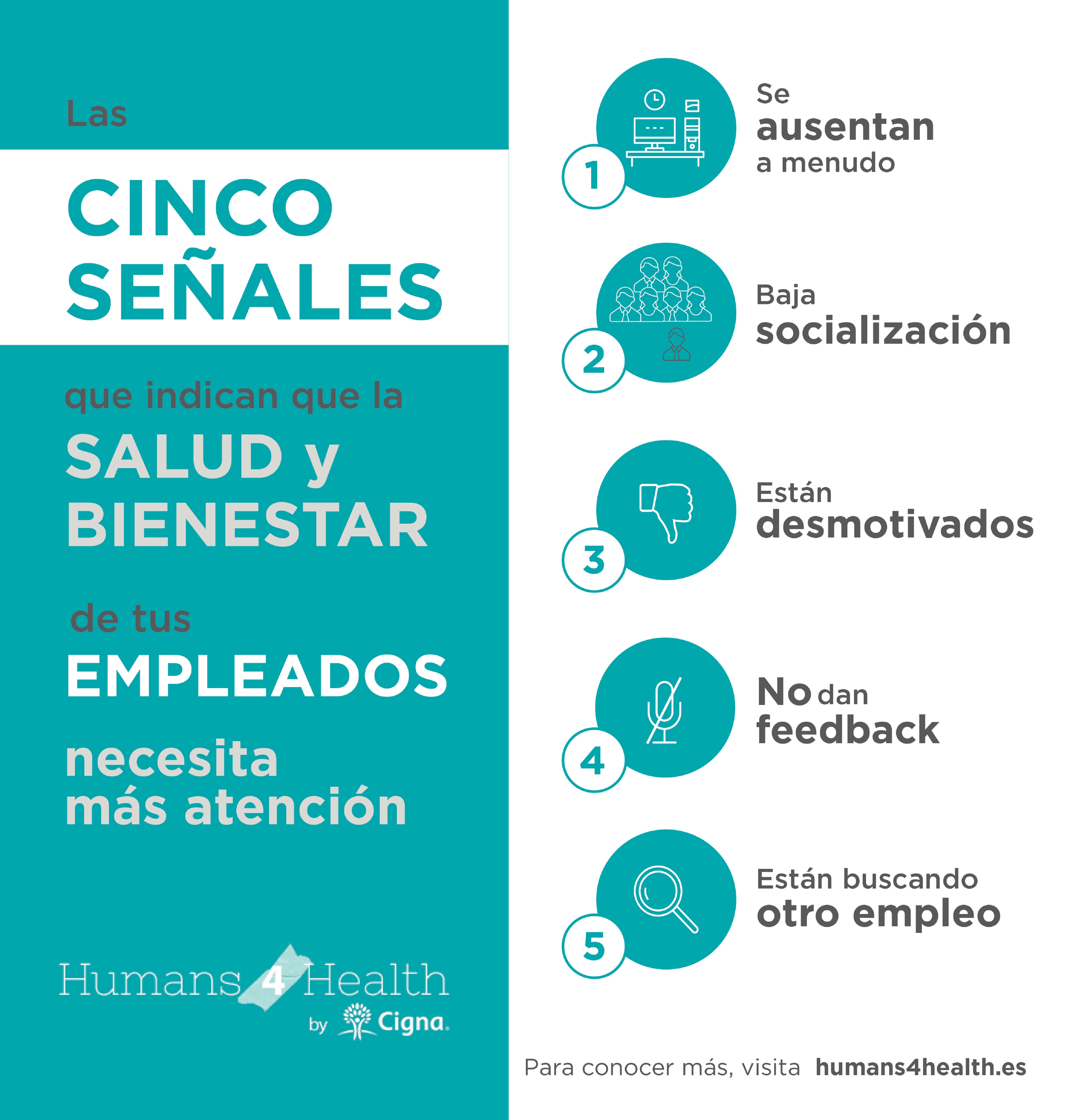 La compañía ha detectado 5 señales de alerta para detectar que la plantilla necesita más atención a su salud: ausencias reiteradas, baja socialización, trabajo en mínimos y con errores, falta de feedback con la dirección y alta rotación en la empresa.