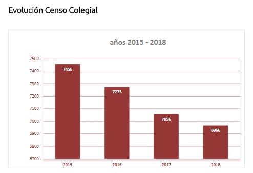 Los datos muestran que la sangría de pérdida de colegiados parece que se va parando. Entre 2017 y 2018 el descenso ha sido de 90 colegiados, mientras que en 2011 y 2012 fue de más de 400. Entre 2016 y 2017 fue la excepción superando los 200 miembros que no renovaron su colegiación. En cualquier caso la pérdida de colegiados desde 2011 hasta ahora es de 1.573.