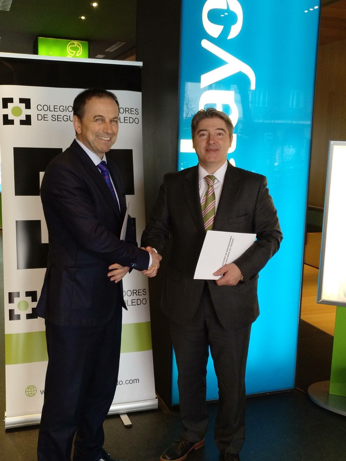 Pelayo y el Colegio de Mediadores de Toledo han firmado un acuerdo de colaboración que contempla la posibilidad del uso de las instalaciones colegiales por parte de la red de ventas de Pelayo, el patrocinio de eventos institucionales, la realización de jornadas de formación profesional para el colectivo de mediadores y la impartición de talleres de trabajo específicos en materia de productos. El acuerdo lo han suscrito el director comercial Territorial Centro de Pelayo, Francisco Javier Santos, y el presidente del Colegio de Toledo, Jose Enrique García.
