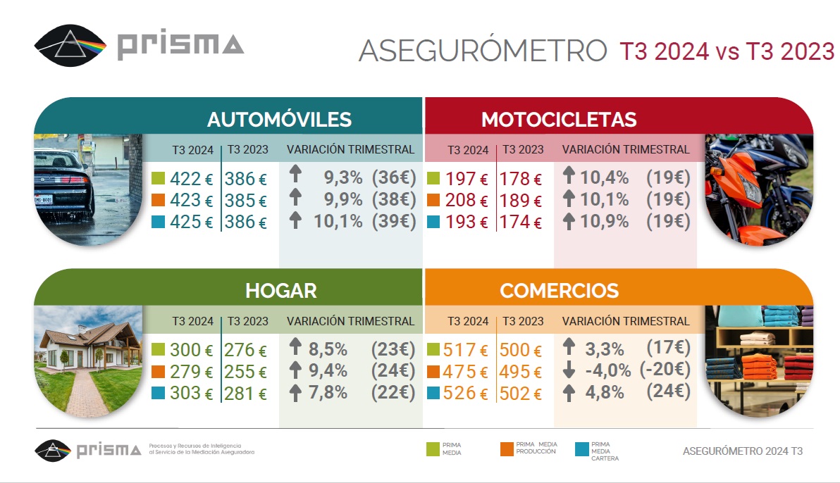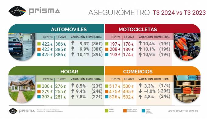 Los precios del seguro de Autos en el canal de corredores se han incrementado un 10% en el 3º trimestre según datos facilitados por el Asegurómetro de Prisma. Así, la prima media se ha situado en los 423 euros para las nueva producción y prácticamente igual para las renovaciones (425 euros).