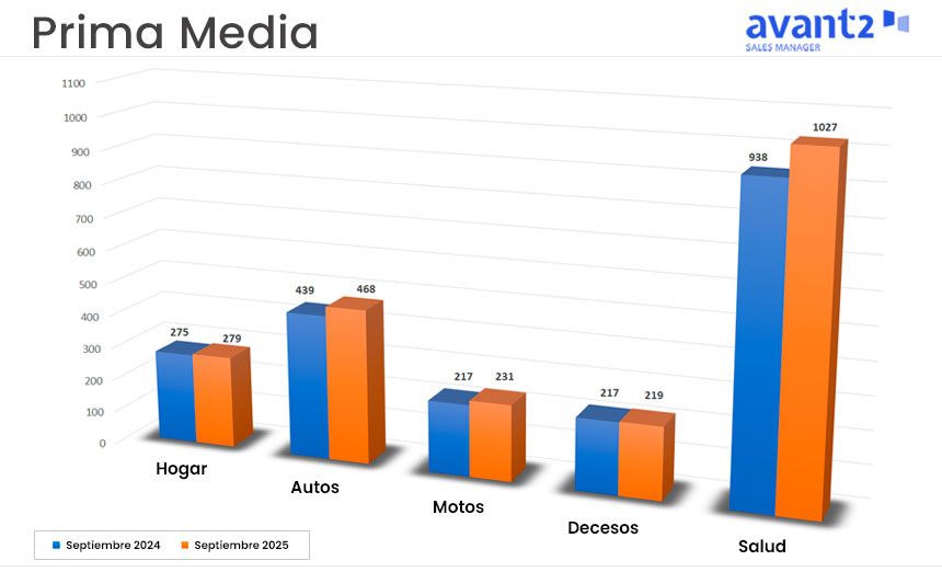 Los datos de Avant2 Sales Manager muestran aumentos en la prima media de nueva producción en los principales ramos de No Vida al cierre de septiembre. En Hogar, la prima media interanual marcó una subida del 1%, con el mayor crecimiento en la modalidad Hogar Premium (+1%) y una prima media de 379 euros; en Hogar Básica, decremento de casi un 2% y en la Estándar, no llegó al 1% y 273 euros.