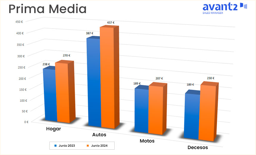 En Autos, el incremento fue superior al 12%. En terceros ampliado la prima media fue de 393, en 'todo riesgo con franquicia alta' de 790 y en 'todo riesgo sin franquicia' de 806, con subidas del 13% en ambos casos. Mientras, en Motos el crecimiento superó al 9% en la prima media de nueva producción.