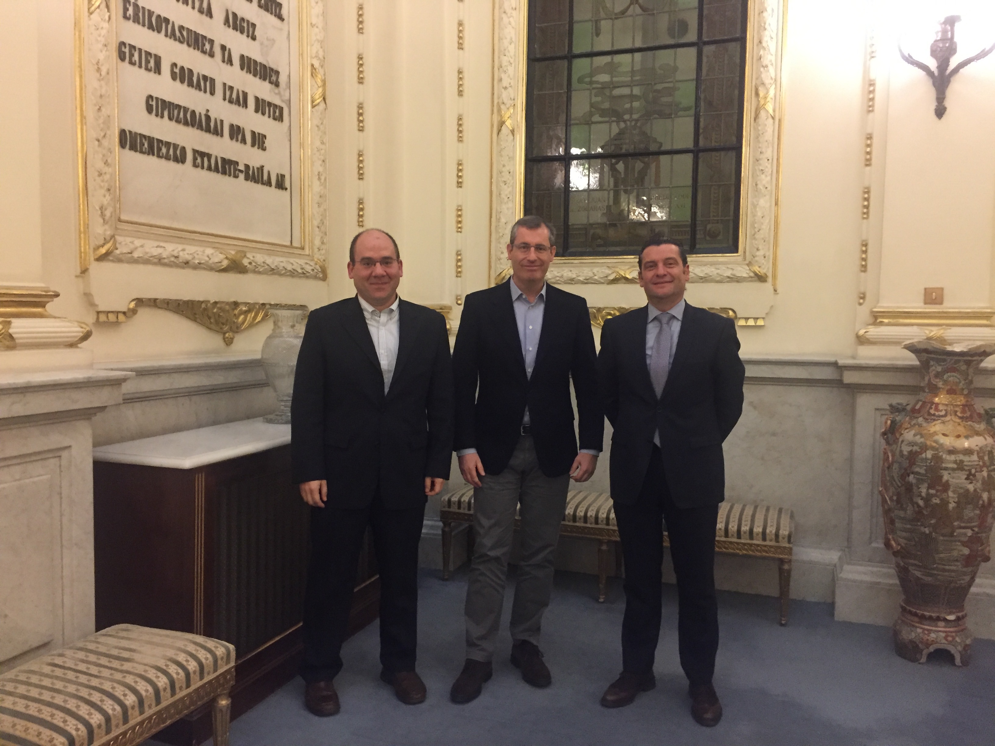 El presidente del Colegio de Gipuzkoa, Iñaki Durán, y su vicepresidente, Javier Cartón, han sido recibidos en la Diputación Provincial por el diputado general de Gipuzkoa Markel Olano, en el marco de las reuniones con instituciones que mantendrán a lo largo de 2017.