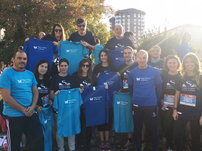 Parte del equipo de la correduría S4 ha participado en la V Carrera Solidaria organizada por la Asociación Vigo contra el Cáncer. El objetivo era colaborar en un evento que recaudaba fondos para la investigación contra esta enfermedad y financiar actividades con los niños ingresados en la sección de oncología del Hospital Álvaro Cunqueiro.