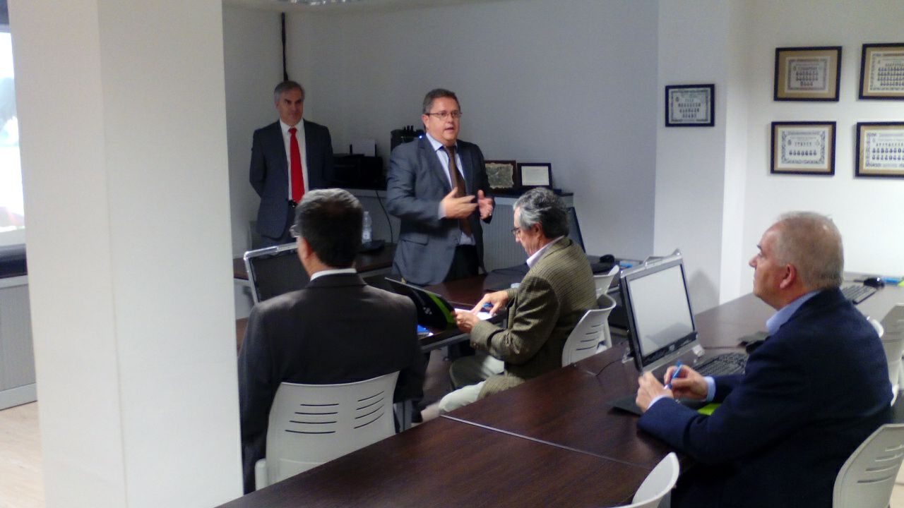 Pedro Tienda, director de zona, Germán Sánchez, director médico, y Jesús Reina, jefe de ventas de Granada de Sanitas presentaron ante los colegiados de Granada su oferta de servicios y portafolio de productos.