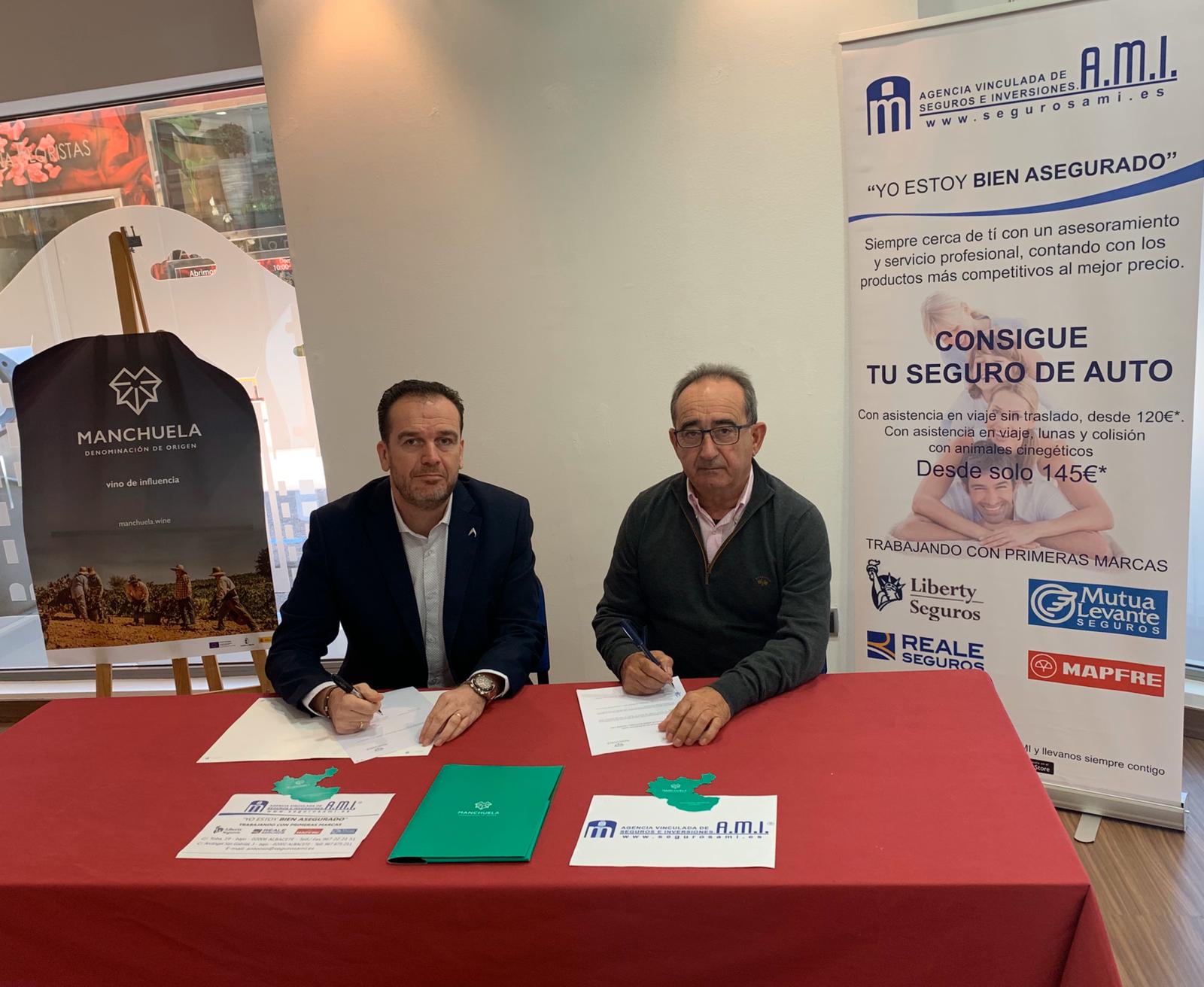 Seguros AMI ofrecerá condiciones personalizadas a las bodegas de la Denominación de Origen Manchuela tal y como se ha acordado en el convenio de colaboración firmado entre el presidente de la Denominación de Origen, Juan Miguel Cebrián, y el CEO de seguros AMI, Antonio Martínez.