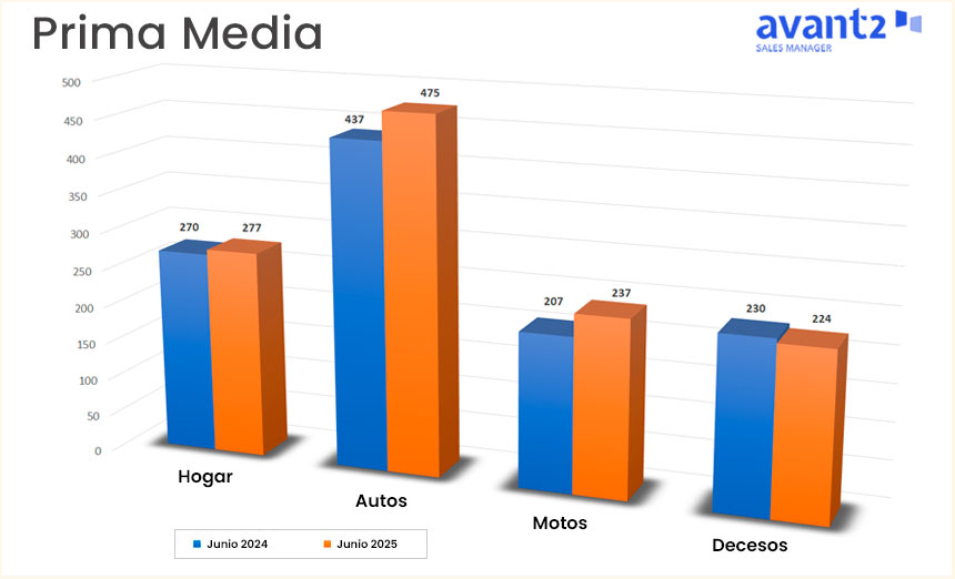 Los datos de junio obtenidos a partir del volumen de operaciones gestionadas en Avant2 Sales Manager de Codeoscopic revelan un encarecimiento en las pólizas de nueva producción de Autos, Hogar y motos, mientras que se observa un descenso en los ramos de Salud y Decesos.