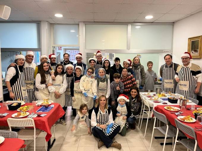 El equipo preparó y dio de comer a 160 personas y repartió tuppers a otras 40. En total fueron 200 los menús, consistentes en huevos rellenos de atún, lacón a la gallega, arroz caldoso con calamares, langostinos y rape, brocheta de fruta variada y dulces navideños.