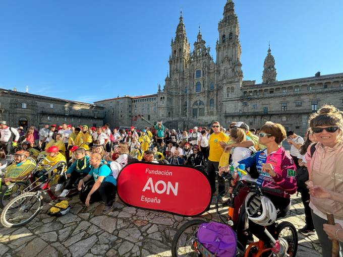 10 voluntarios de la Fundación Aon España se han unido a la Fundación También para hacer juntos parte del Camino de Santiago desde Palas de Rei a Compostela acompañando a una treintena de personas con discapacidad y movilidad reducida. A los peregrinos se ha unido una vez más la periodista Irene Villa y miembros del Club ciclista Os do Monte Bravo.