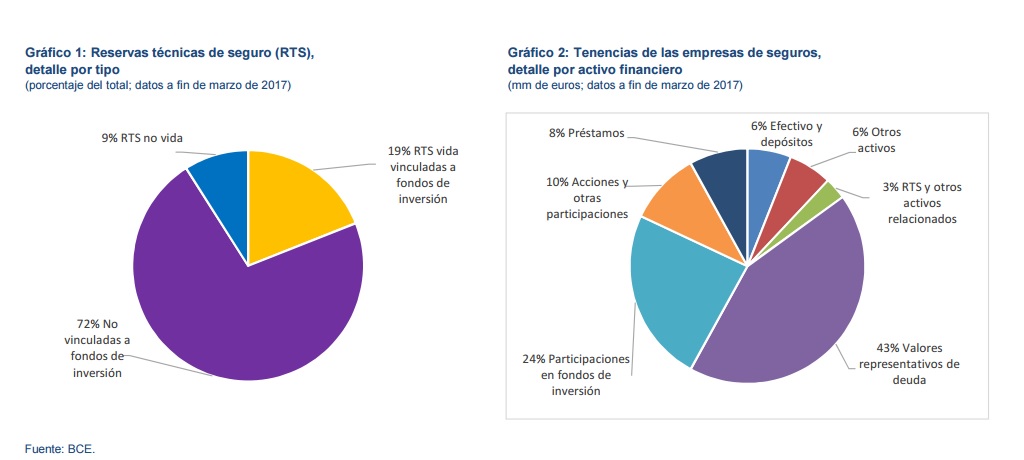 Las reservas técnicas de las aseguradoras de la eurozona aumentaron hasta los 5.916 millones de euros (5.882 millones un año atrás). Las reservas técnicas de seguro de Vida representaban el 91% del total. Los productos vinculados a fondos de inversión ascendían a 1.096 millones de euros y constituían el 20% del total de reservas técnicas de seguro de Vida.