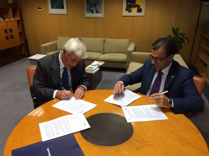 El presidente de Agroseguro, Ignacio Machetti, y el del Consejo General de Colegios Oficiales de Ingenieros Técnicos Agrícolas de España, Javier Lorén, han firmado un convenio de colaboración para la realización de acciones conjuntas de promoción, formación y empleo especializado en el sector de los seguros Agrarios. El acuerdo establece, entre otras cosas, la colaboración para la organización de congresos, jornadas, ponencias, presentaciones, artículos y otras actuaciones formativas.