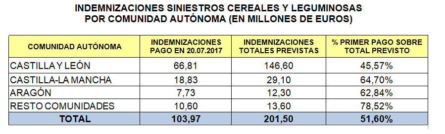 millones. Esta cifra supera la cantidad anual pagada en esta línea de seguro en toda la historia del seguro agrario.
