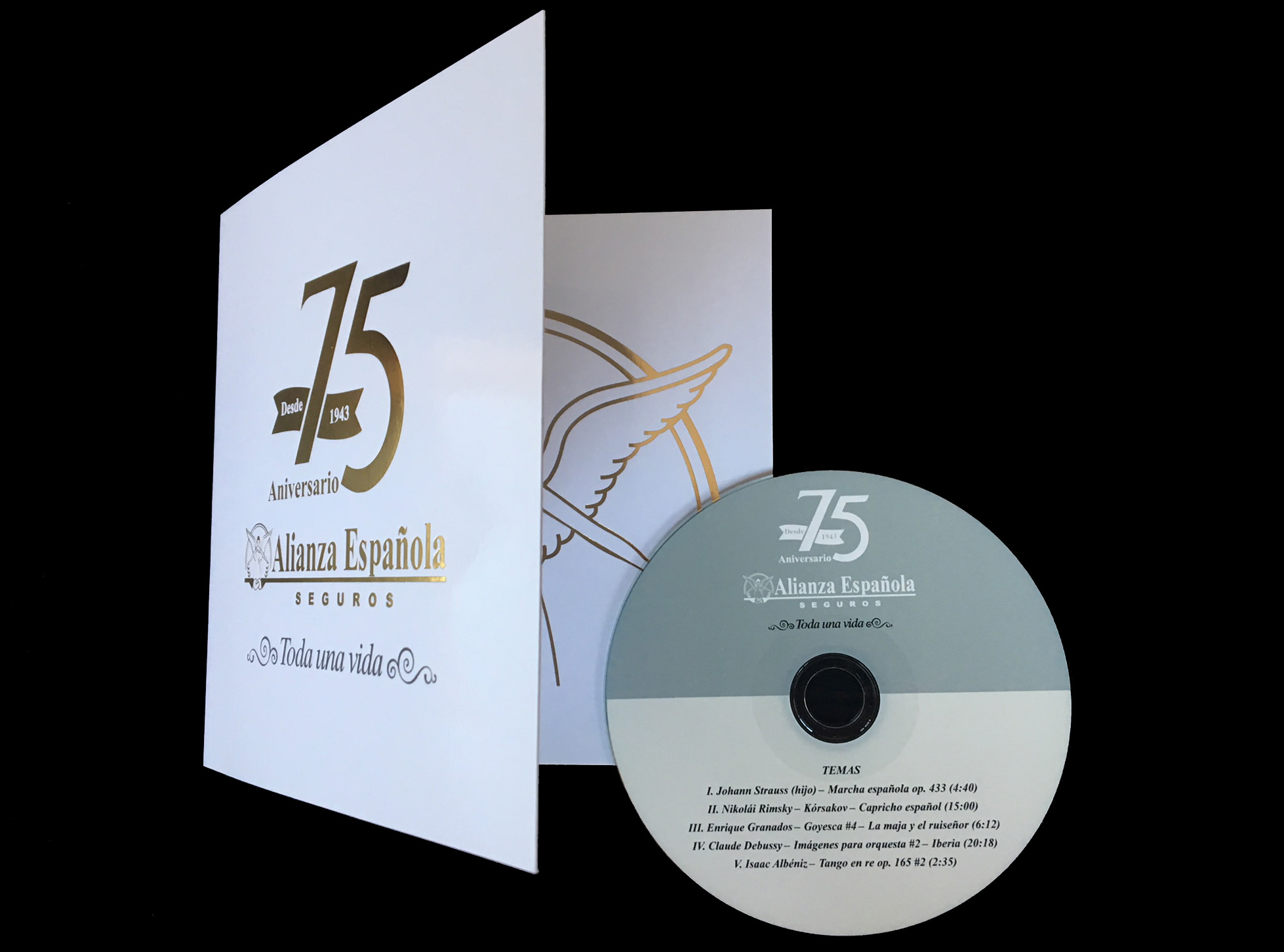 La entidad especializada en seguro de Decesos Alianza Española ha querido cerrar el 75 aniversario desde su fundación que ha celebrado a lo largo de 2018 con el diseño y producción de un CD de música clásica que entregará próximamente como obsequio. En él aparecen compositores como Johann Strauss, Enrique Granados o Claude Debussy. Las obras también estarán disponibles en formato digital desde la página web de la compañía.