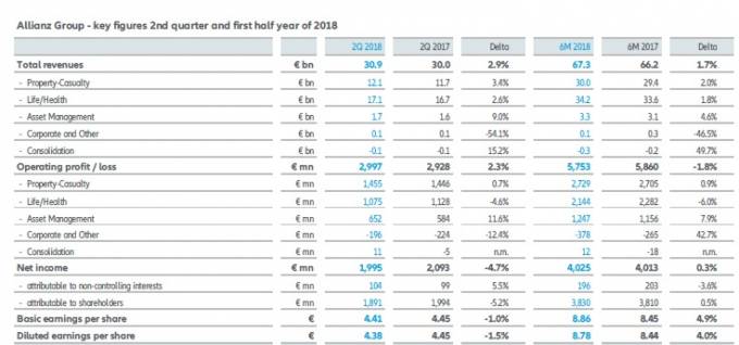 Allianz ha presentado esta mañana sus resultados del primer semestre del año donde refleja un beneficio neto de 4.025 millones de euros, con un incremento del 0,3%. El resultado en el segundo trimestre cayó un 4,7%.