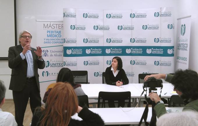 El experto en comunicación, Jesús Monroy, ha impartido una ponencia a los alumnos del Máster en Peritaje Médico y Valoración del Daño Corporal de la Fundación Uniteco y la Universidad de Alcalá. La clase magistral estuvo orientada a que aprendieran las principales técnicas de comunicación verbal y no verbal útiles a la hora de ratificar un informe pericial en los tribunales.