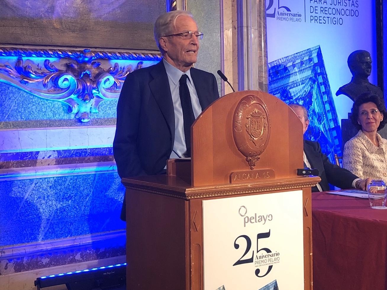 El presidente de Pelayo, José Boada, recordó que un año más se reconoce "la encomiable labor" un profesional del ámbito jurídico por su contribución a mejorar la sociedad, fomentando la convivencia a través de la práctica jurídica, y el ejemplo de su trayectoria profesional que transmiten a las generaciones futuras. "El Premio Pelayo también quiere apoyar los principios y valores de nuestro estrato social y democrático desde el Derecho, plasmados en la Constitución", dijo.