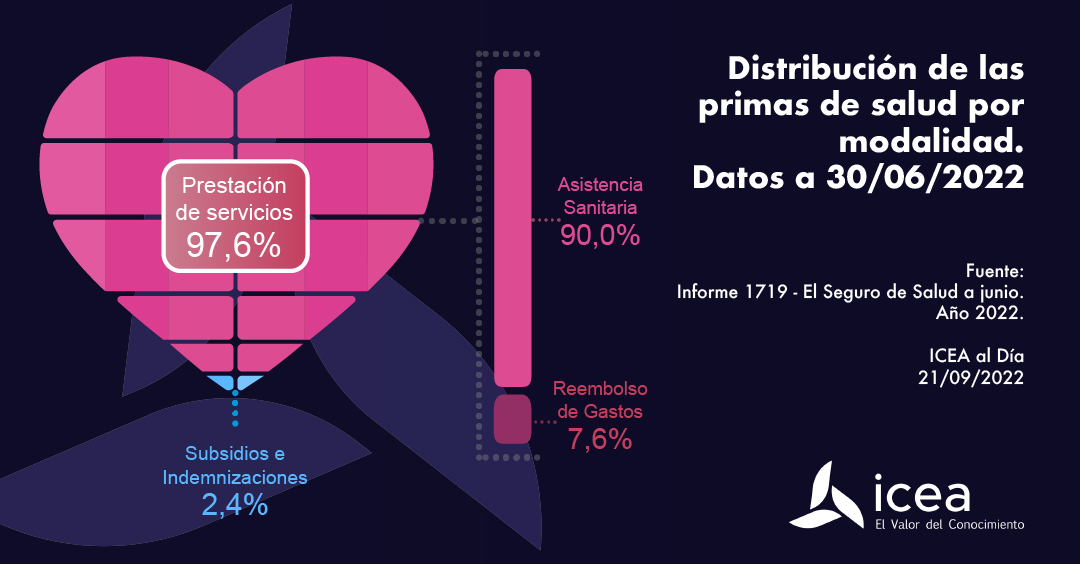 Desglosada la recaudación por modalidades, Asistencia Sanitaria ha aportado un 90% al volumen de primas; Reembolso de gastos, un 7,6%; y Subsidios e Indemnizaciones, un 2,4%.