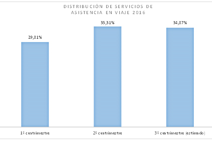 El pasado 4 de diciembre Asitur Asistencia realizó el servicio 1 millón de asistencia en viaje en 2016. La cifra supone la realización de 2.950 servicios al día o 123 a la hora. Los servicios de la entidad se han incrementado un 4,4% respecto a 2015; los meses de verano son los que más incidencias han registrado, mientras que enero y febrero fueron las de menor intensidad.