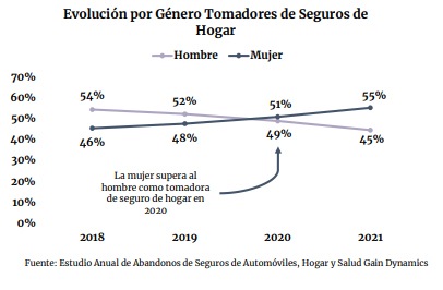 El estudio Anual de Abandonos del Sector de los Seguros en 2021 que realiza Gain Dynamics apunta un mayor número de mujeres tomadoras de seguros. Según estos datos, las mujeres suponen ya el 55,3% de quienes poseen un seguro de Autos, lo que muestran un crecimiento respecto a los datos de 2018 cuando sólo el 40,2% de estos seguros contaban a una mujer como tomadora.