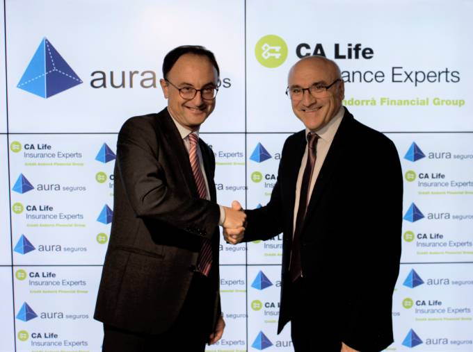 Aura Seguros, compañía especializada en seguros de Decesos, y CA Life Insurance Experts, entidad del Grupo Crèdit Andorrà que ofrece seguros de Vida, han firmado un acuerdo que permitirá la comercialización de productos vinculados al ramo de Vida a toda la red comercial de Aura Seguros. La firma del acuerdo la han llevado a cabo Josep Brunet, presidente de CA Life Insurance Experts, y José Martínez, presidente y consejero delegado de Aura Seguros.