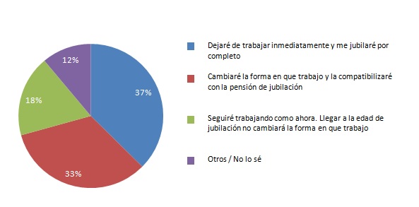 Por su parte, el 37% del colectivo, frente al 48% de media española, tiene planeado dejar de trabajar inmediatamente una vez alcance la edad necesaria para jubilarse mientras que 18% seguiría trabajando activamente con un horario laboral completo. Por último, el 12% restante todavía no se ha planteado cómo será su transición a su retiro.