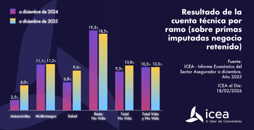 De los datos de ICEA, y con estas cifras, se desprende que el resultado de la cuenta técnica del sector alcanzó el 10,5% a