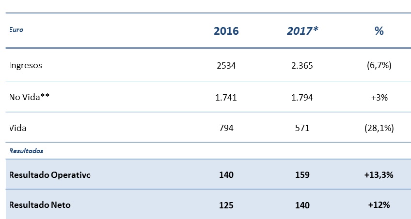 AXA España aumenta su beneficio operativo un 13,3% en 2017, situándolo en los 159 millones de euros, y un beneficio neto de 140 millones de euros.