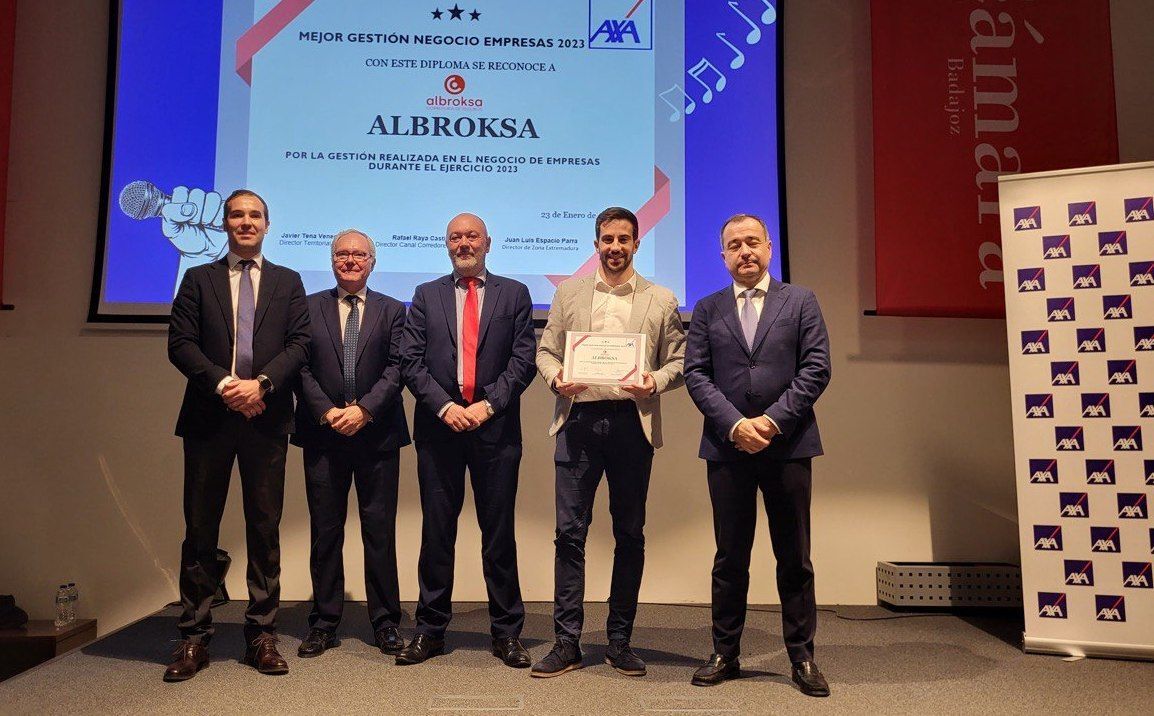 Albroksa ha comunicado que en la reciente convención de corredores en Badajoz celebrada por AXA, la aseguradora le otorgó el premio a la mejor gestión en el negocio de empresas y de Salud.