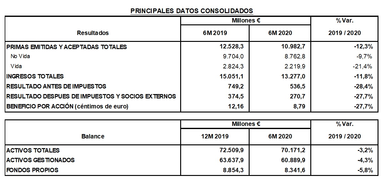 El volumen de primas se ha situado en los primeros 6 meses del año en los 10.983, lo que indica una caída del 12,3% respecto a junio de 2019. Según explica la aseguradora, el descenso se "enmarca en un contexto de caída de actividad económica causada por la crisis del Covid-19" iniciada en marzo y que se ha agudizado durante el segundo trimestre y ha impactado a todos los países.