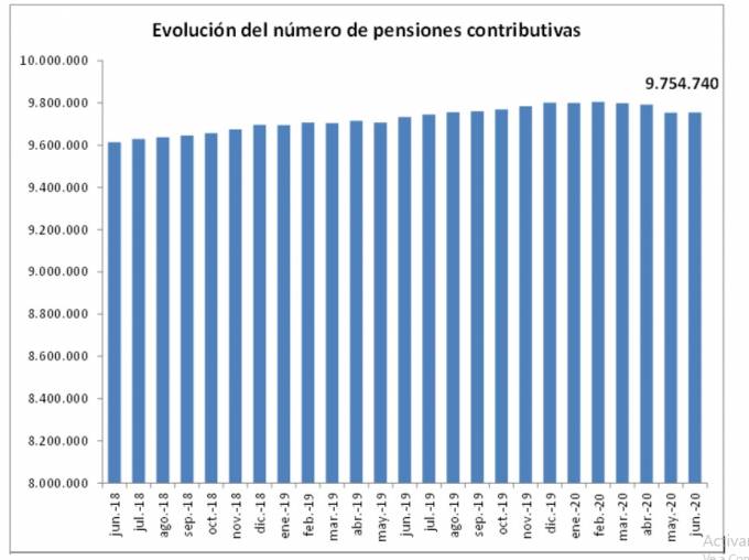 Por otro lado, la nómina de pensiones contributivas de junio se sitúa en 9.862,35 millones de euros lo que supone un incremento del 2,26% respecto al mismo mes del año pasado. Más de dos tercios de la nómina se destinan al abono de las pensiones de jubilación, cuyo montante asciende a 7.057,66 millones de euros, cuantía que creció un 2,84% en los últimos doce meses. La pensión media de jubilación alcanzó los 1.161,88 euros, un 2,1% más respecto al año pasado., siendo las nuevas altas de 1.433,92 euros al mes de media.