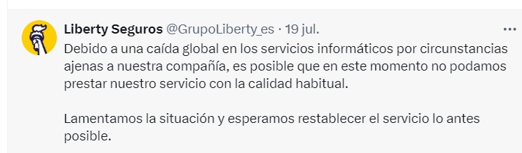 Por su parte, también Liberty reaccionó con rapidez y al poco tiempo de declararse el incidente ya avisaba a sus clientes de que posiblemente "no pudiesemos prestar nuestro servicio con la calidad habitual" y confiaban en "restablecer el servicio lo antes posible".