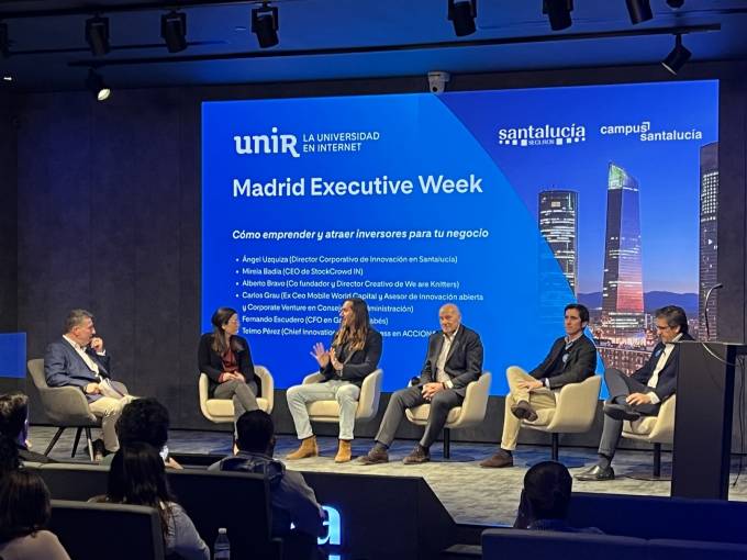 Santalucía, a través de su iniciativa Campus Santalucía, se ha unido a la Madrid Executive Week de la Universidad Internacional de la Rioja (UNIR), para celebrar con más de 100 alumnos de sus másteres internacionales tres jornadas de inmersión académica y liderazgo empresarial. En el evento, los alumnos que cursan alguno de los Executive Masters internacionales de UNIR pudieron conocer a CEO y directivos de compañías como Santalucía, LG y Ernst & Young, entre otras.