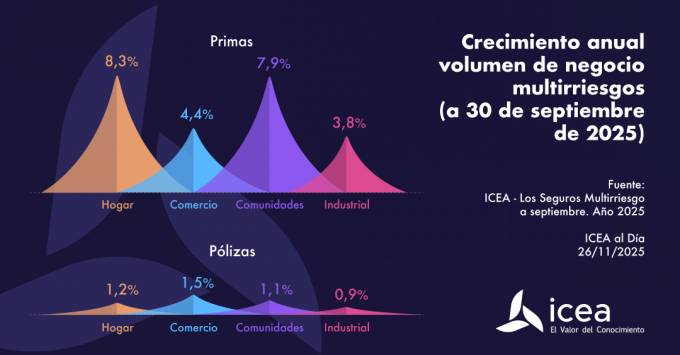 Al cierre del tercer trimestre, Multirriesgos ha experimentado un incremento del 1,2% en su cartera de pólizas, según ha desvelado ICEA en su boletín semanal. Por modalidades, donde más ha crecido hasta septiembre ha sido en Comercio (+1,5%), seguido de Hogar (+1,2%), Comunidades (+1,1%) e Industria (+0,9%).