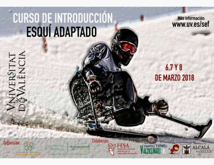 La Cátedra Divina Pastora de Deporte Adaptado de la Universitat de València y el Servei d'Educació Física i Esports de la Universitat de València organizan un curso introductorio al esquí adaptado, que se celebrará del 6 al 8 de marzo en Alcalá de la Selva y la estación de esquí de Valdelinares. Esta iniciativa cuenta también con la colaboración de la Federación de Deportes Adaptados de la Comunidad Valenciana (FESA), el Ayuntamiento de Alcalá de la Selva y el centro técnico Valdelinaresqui.