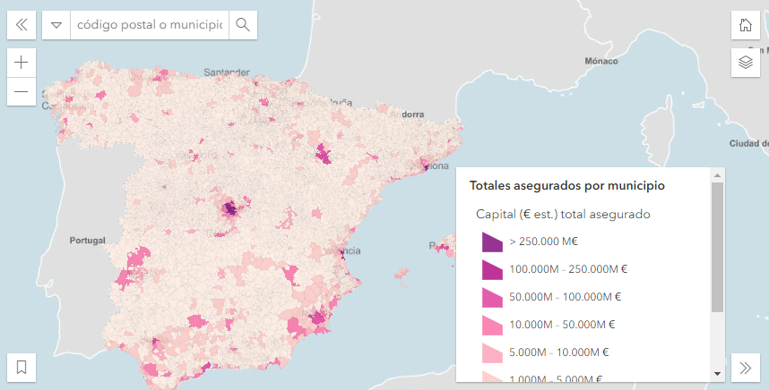 En concreto, este conjunto de datos incluye códigos postales de toda la geografía española y refleja la situación de las pólizas a 31 de diciembre de 2022. Estos datos estadísticos se pueden consultar en la web del CCS a través de un mapa interactivo en el que se pueden conocer los capitales totales asegurados bien por municipio o código postal y hacer comparaciones. Además de utilizar este visor de mapas para hacer consultas detalladas, esta información se puede descargar en xls (excel) y csv (texto plano).
