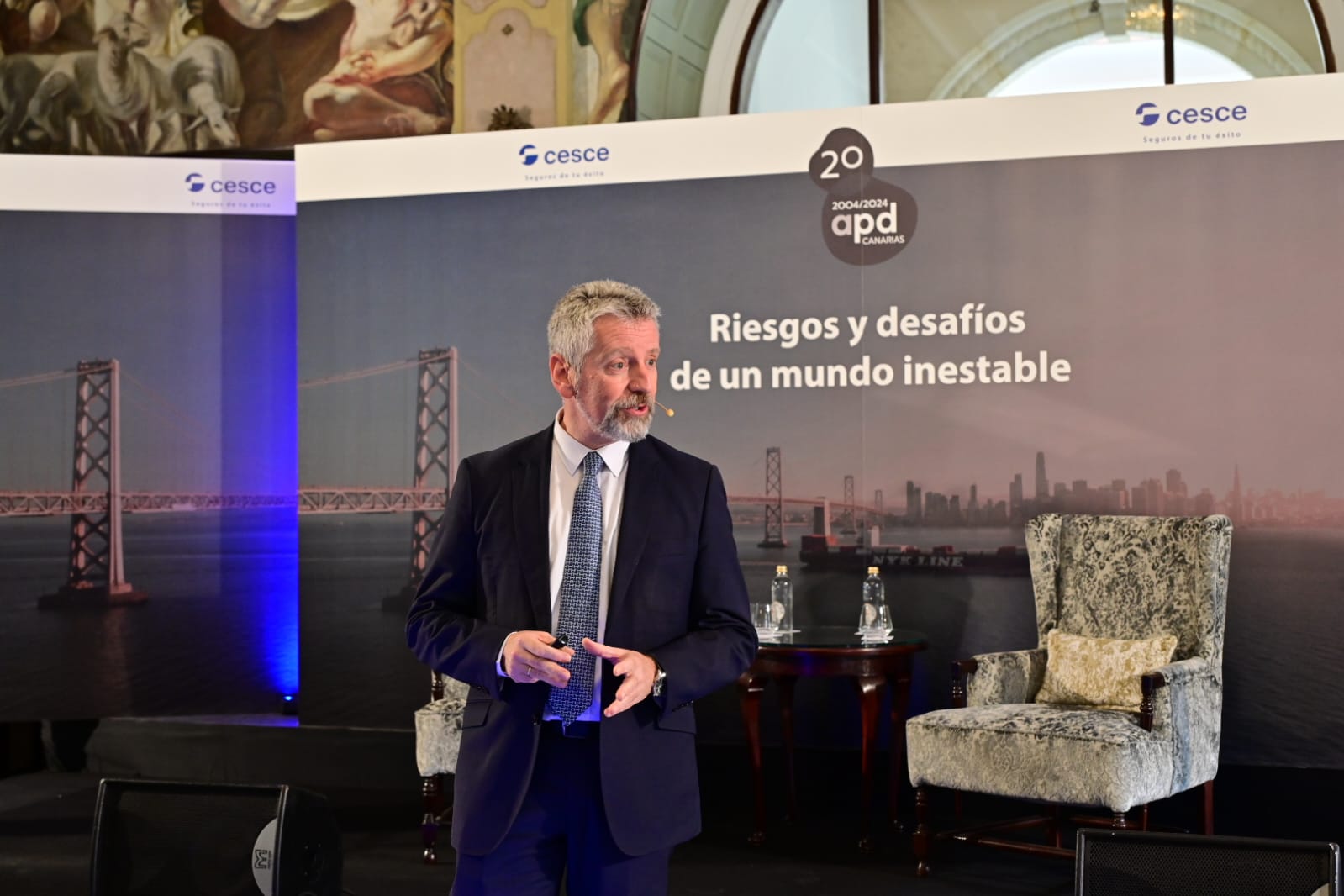 El presidente ejecutivo de Cesce, Fernando Salazar, participó en un encuentro de la Asociación para el Progreso de la Dirección en Canarias (APD) en el que compartió su visión sobre los riesgos internacionales actuales para la economía y la geopolítica y los que marcarán la agenda global durante los próximos meses. Destacó que 2024 será un año de "urnas y armas" con elecciones en más de 70 países y el desarrollo de los conflictos armados que ya se vienen sucediendo, como el de la franja de Gaza o el de Rusia y Ucrania, además de la tensión entre Estados Unidos y China por la hegemonía global.