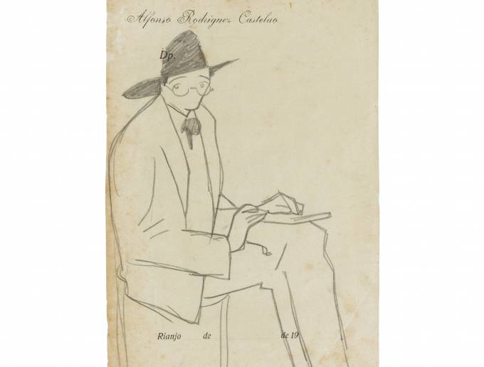 La muestra repasa la obra plástica de Alfonso Daniel Rodríguez Castelao (Rianxo, A Coruña, 1886 - Buenos Aires, 1950), centrándose en sus creaciones gráficas: dibujos para ilustrar publicaciones y libros, diseños, carteles, estampas. La selección de obras que se presentan permite conocer el progresivo compromiso ético, social y político de Castelao, pero también sus recursos plásticos y cómo culmina la definición de su lenguaje en el encuentro entre texto y dibujo: desde las colaboraciones en la revista Vida Gallega a las ilustraciones en las que el texto adquiere un protagonismo ascendente que sintetiza en colaboraciones que, bajo el título genérico de Cousas da vida, pueden ser vistas como propuestas humorísticas pero también como reflexiones de fondo social. La progresiva politización de Castelao se ve reflejada en los carteles y las colaboraciones de los años 30 y, de un modo muy especial, en las estampas de guerra realizadas en plena época de madurez y compromiso político.