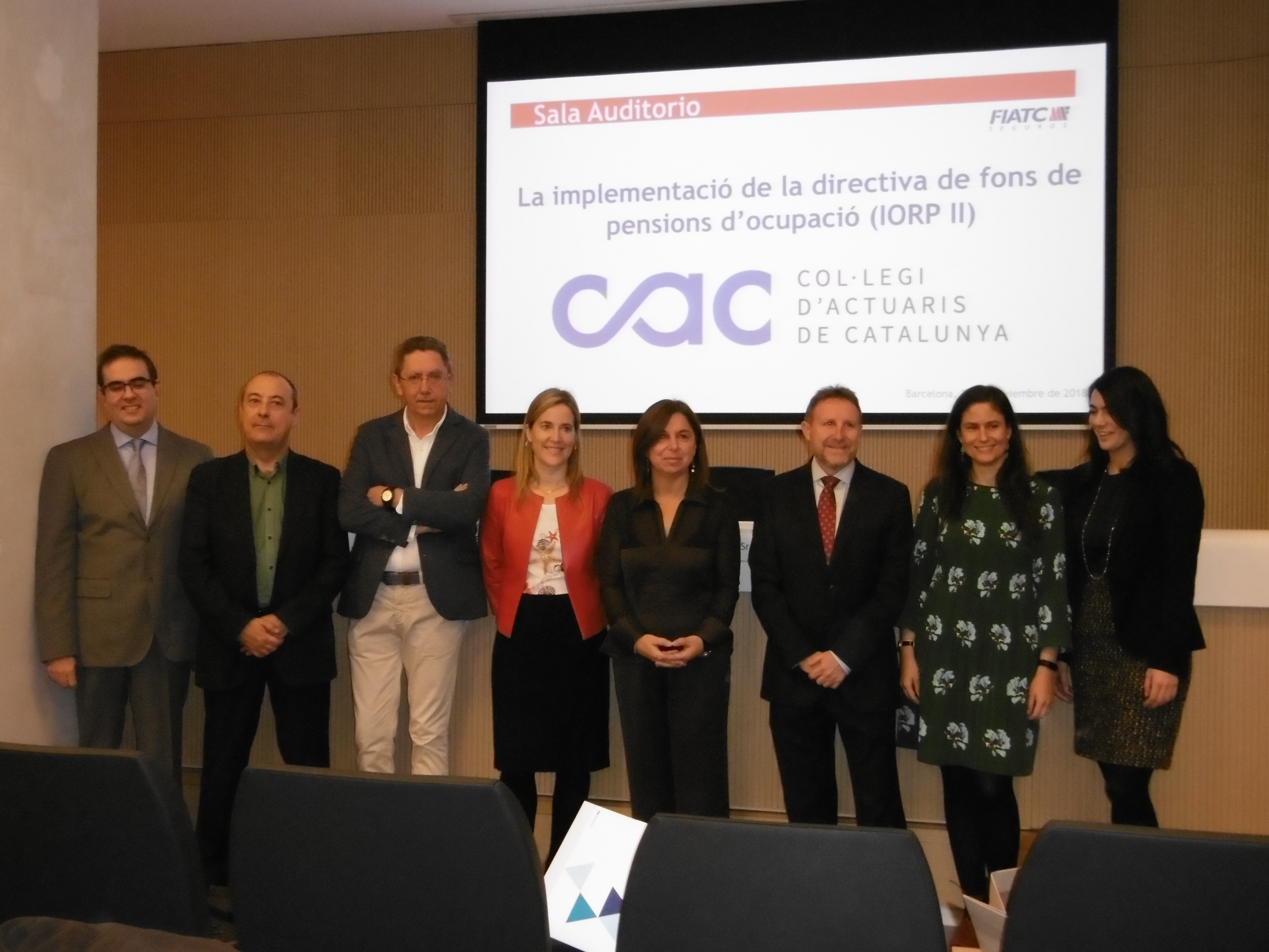 El 29 noviembre de 2018, en el Auditorio de Fiatc Seguros, en Barcelona, se llevó a cabo la jornada 'La implementación de la Directiva 2016/2341 de Fondos de Pensiones de Empleo (IORP II)', organizada por el grupo de trabajo de Pensiones y Seguridad Social del Colegio de Actuarios de Catalunya. La nueva normativa, inspirada en Solvencia II, afectará principalmente a aspectos relacionados con la gobernanza de las entidades gestoras, mejorando la transparencia de la información a partícipes y beneficiarios. La normativa dedica un apartado importante a las funciones del actuario, como experto en la valoración y gestión de los riesgos de los Planes de Pensiones.