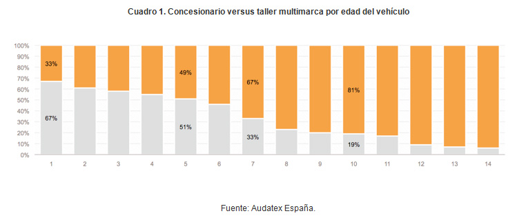 Cuando un vehículo cuenta entre los 0 y los 5 años las reparaciones se realizan mayoritariamente -el 58% de ellas- en los concesionarios de marca. Sin embargo, cuando el auto ha superado esta edad estos centros pierden hasta un 30% de su negocio de reparaciones en el taller y los propietarios llevan sus coches a centros multimarca perdiendo la mitad de su negocio. Son datos del informe ‘El futuro de la iPosventa’ que Audatex ha presentado en el Congreso Faconauto que se celebra hoy en Madrid.