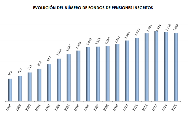 Como en años anteriores, en el mercado español continúa el proceso de concentración tanto de gestoras como de Planes y Fondos de Pensiones. El ‘Informe del Sector 2015’ de la DGSFP confirma que el número de Planes de Pensiones descendió desde los 2.914 de finales de 2014 a los 2.857 al término de 2015 (el 1,96% menos). El número de gestoras descendió de 84 a 82 (-2,38) y el de depositarias de 51 a 47 (-7,84%). También fue inferior el número de Fondos de Pensiones, que bajó desde 1.716 a 1.688 (-1,63%); es el segundo año en que desciende el número de Fondos.