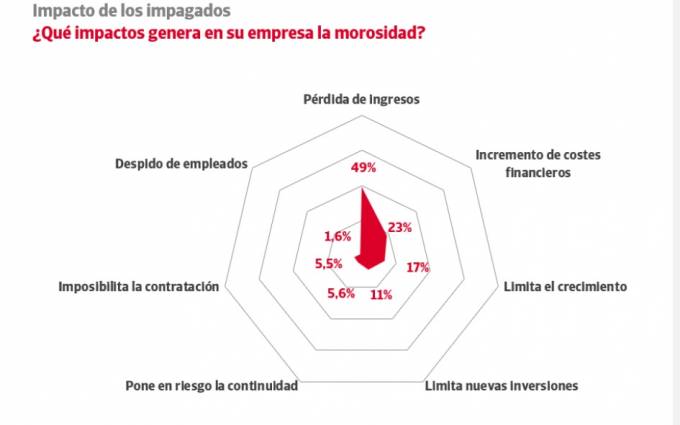 Este impacto se concreta en que un 56% de las empresas españolas sufre el impacto negativo de la morosidad en su cuenta de resultados y incluso un 5,6% afirma que corre el riesgo de cerrar por el impacto de los impagados.