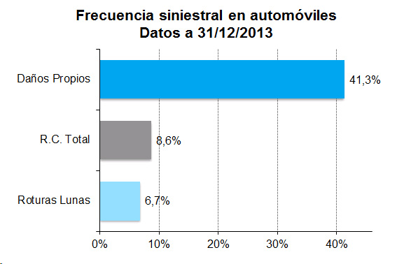 La estadística de ICEA sitúa de nuevo a Daños Propios como la garantía que presentó la mayor frecuencia siniestral en Autos al cierre de 2013, con un ratio de frecuencia del 41,3%. Dentro de ella, la cobertura sin franquicia registró un ratio del 74%, mientras el resto de garantías se mantienen con una frecuencia inferior al 10%.