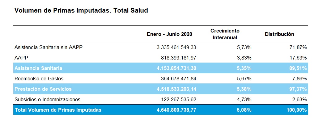 Los datos actualizados confirman un crecimiento en Salud del 5,08% hasta junio