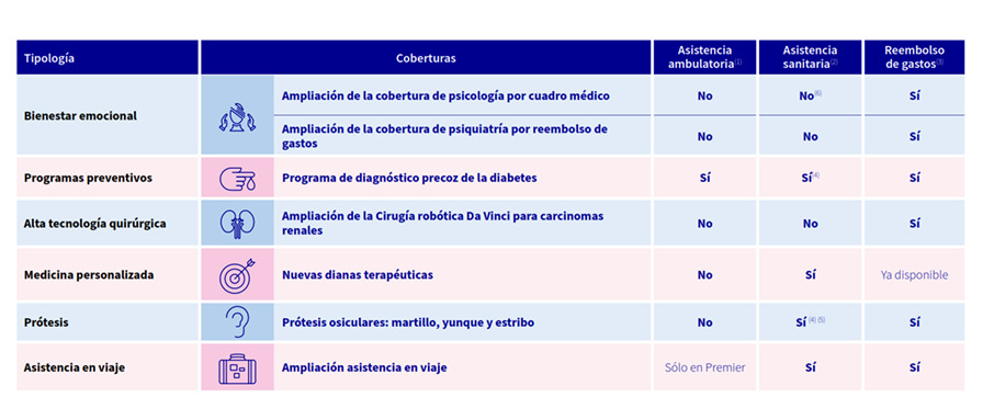 Ana Jiménez, responsable de Salud en AXA España, explica que han incorporado a "nuestras pólizas las últimas novedades en medios de diagnóstico de alta tecnología, en prótesis, medicina personalizada y programas de prevención". Añade también que la salud mental y el bienestar emocional de los asegurados "es una prioridad para nosotros y por eso hemos tratado de mejorar algunas coberturas de psicología".