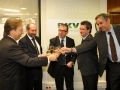 Josep Santacreu, consejero delegado de DKV; Miguel Ángel Olódriz, director Territorial de la Zona Norte; y Andima Eguiguren, director de la sucursal de Bilbao, inauguraron ayer la nueva sucursal de la aseguradora en Bilbao.