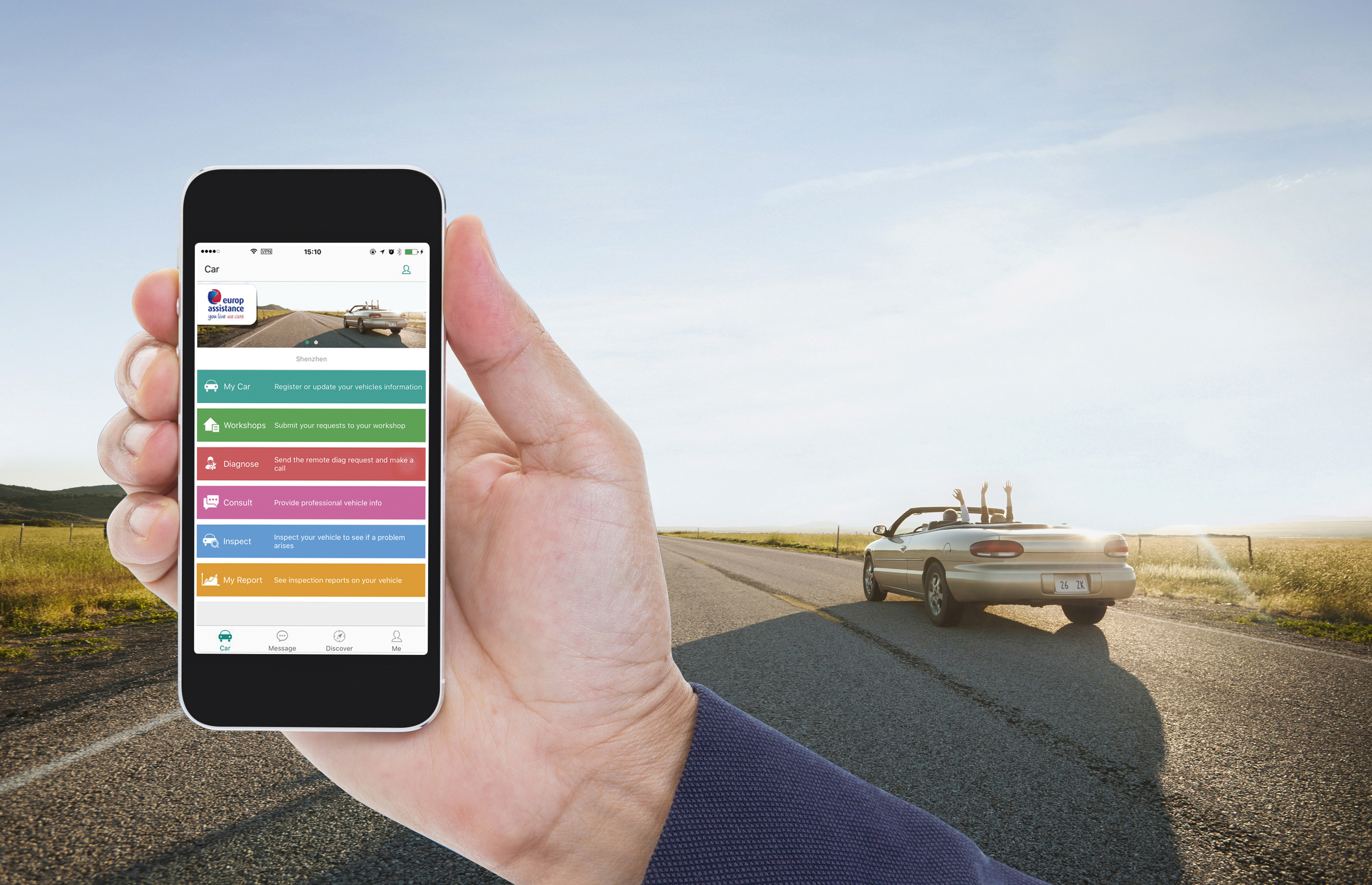 Con esta tecnología el vehículo estará conectado con la central de alertas 24h de Europ Assistance y en caso de impacto o de movimiento del vehículo el cliente recibirá notificaciones sobre el estado del mismo de tal forma que la compañía puede también diagnosticar en remoto las posibles averías en cualquier momento.