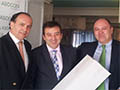 Premios Jamón. En esta ocasión, el premio al mejor profesional de Extremadura entre los empleados de las compañias fue para Juan Carlos Becerra Romero, director de la sucursal de Allianz en Cáceres, que le fue entregado por Eduardo Bernardo (a la izquierda de la foto) y el presidente saliente, Francisco Alcántara (a la derecha). Además, el Premio Jamón 2013 a la mejor compañía fue para Generali y fue recogido por José Dura, director territorial, y Fermín Riaño, director del Área del Canal de Corredores.