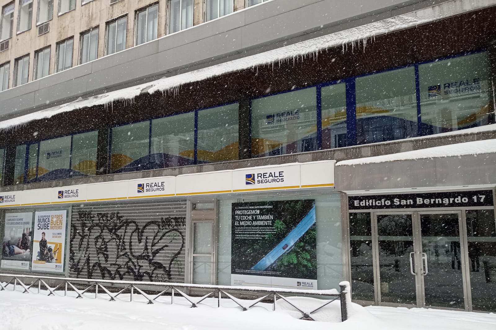 La borrasca Filomena ha dejado estampas históricas a su paso por Madrid y, obviamente, las aseguradoras también han sido protagonistas de muchas. A continuación, recogemos imágenes de sedes u oficinas de compañías durante la nevada del siglo: