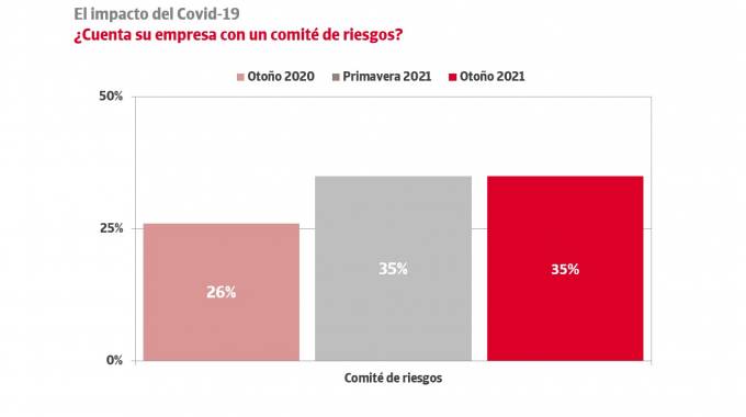 Por último, en el estudio aparece un dato positivo relacionado con la buena evolución de los comités de riesgos. El 35% de las empresas cuenta ya con estas estructuras para el control sistemático y transversal de la cartera de clientes que permite la revisión, aprobación y recomendación de límites en la exposición al riesgo. Supone un avance de 13 puntos frente al valor previo a la pandemia.